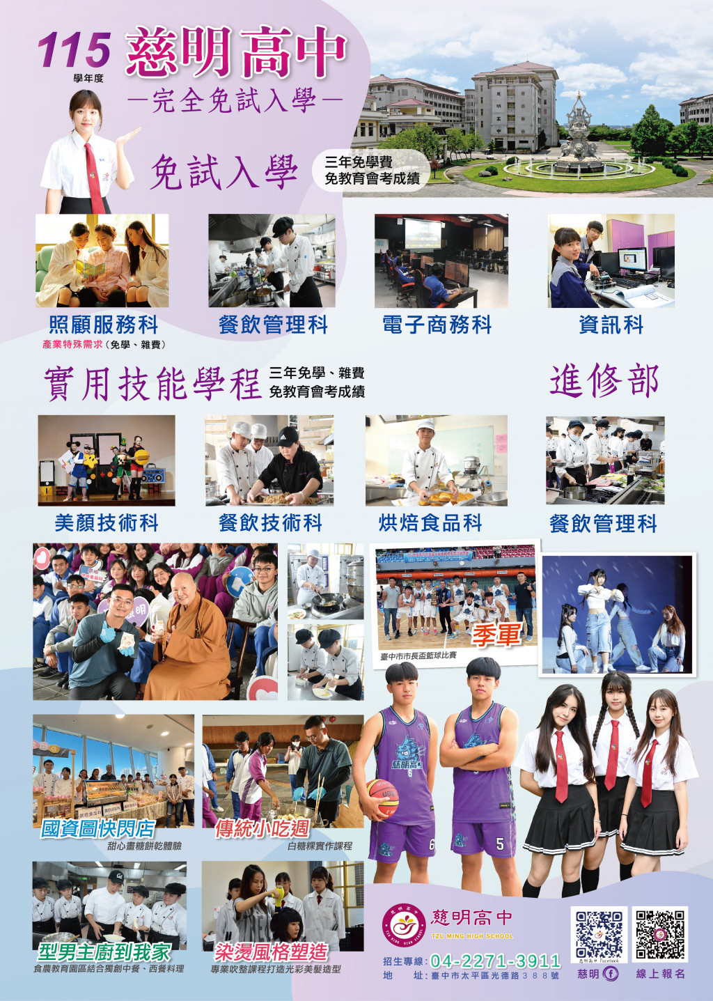 慈明學校財團法人臺中市慈明高級中等學校『115學年度建教合作專班』宣導